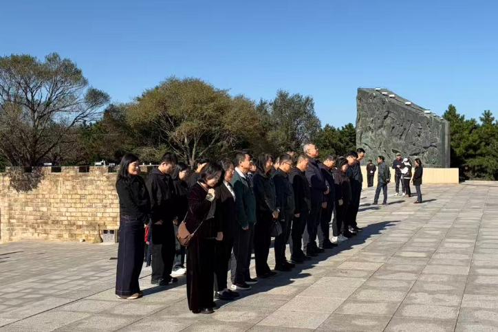 上午10时许,在张鹏程副局长、高志强院长、李慧锋副院长的带领下,党员们整齐列队于百团大战纪念碑前,面向镌刻着历史印记的纪念碑,向在百团大战中英勇牺牲的革命先烈深深默哀并三鞠躬,以最质朴而崇敬的方式,寄托对先烈的深切缅怀与追思。默哀毕,党员们驻足凝视纪念碑上的文字,进一步感悟革命先辈“不畏强敌、舍生取义”的崇高精神,更坚定了新时代农业战线党员传承红色基因、践行初心使命,以实干助力乡村振兴的信念与决心。