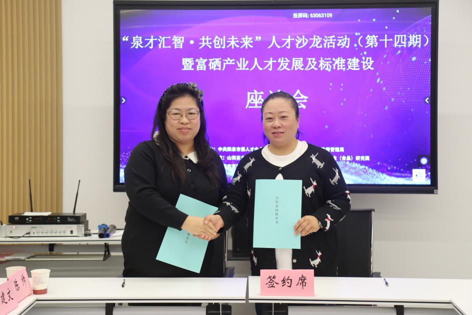 会后,阳泉市富硒产业协会与山西功能农业研究院围绕生产技术规程研发与技术推广应用等方面达成合作意向并举行签约仪式。阳泉市富硒产业协会会长桑英姿和山西功能农业研究院副院长孙敏代表双方签署协议。